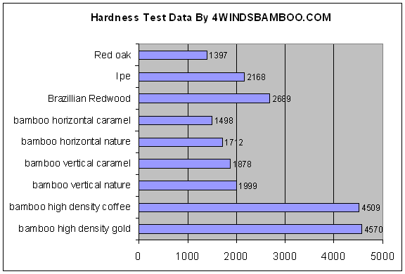 Note 2: Clearly, the hardness of strand bamboo planks show almost double in comparison with other wood species and bamboo horizontal and vertical style planks.